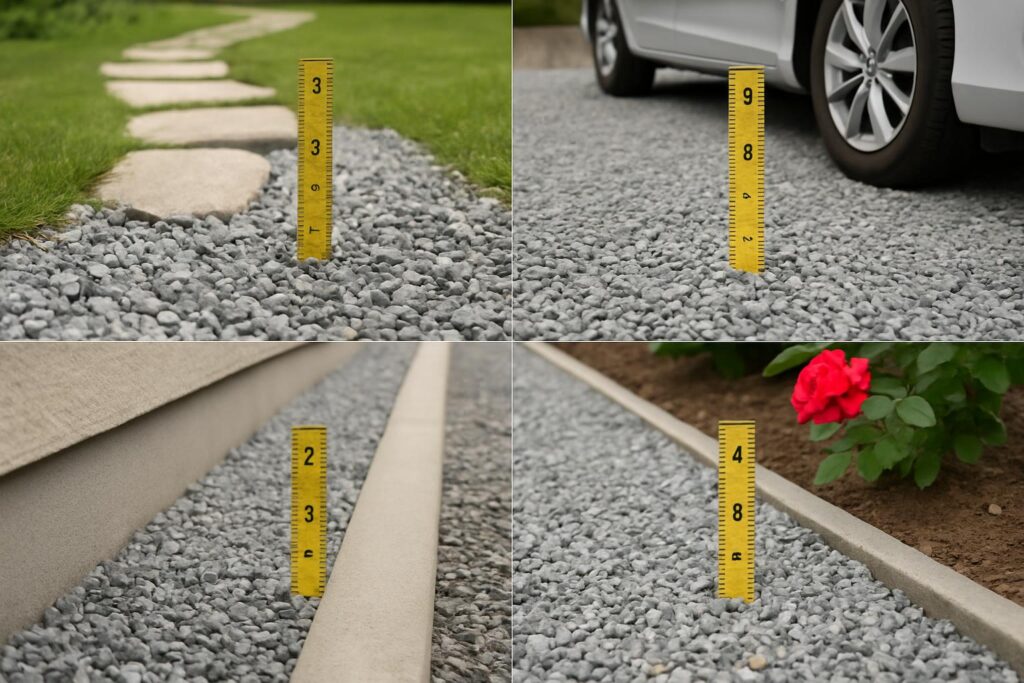 砂利の厚みは施工場所によって適切な基準が異なります。一般的な目安として5cmと言われますが、用途に応じて調整が必要です。