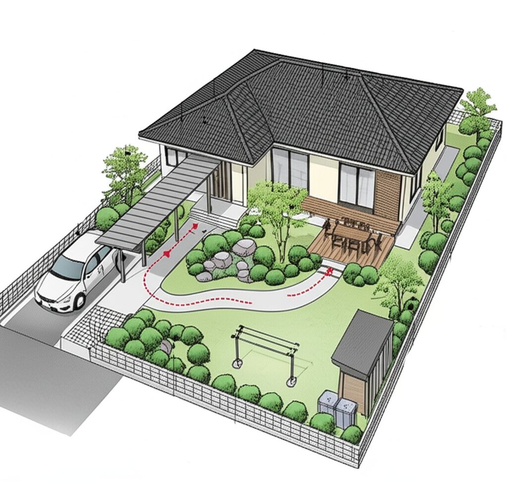 庭の目的が明確になったら、次に行うのがプロの設計手法である「ゾーニング」と「動線計画」です。
