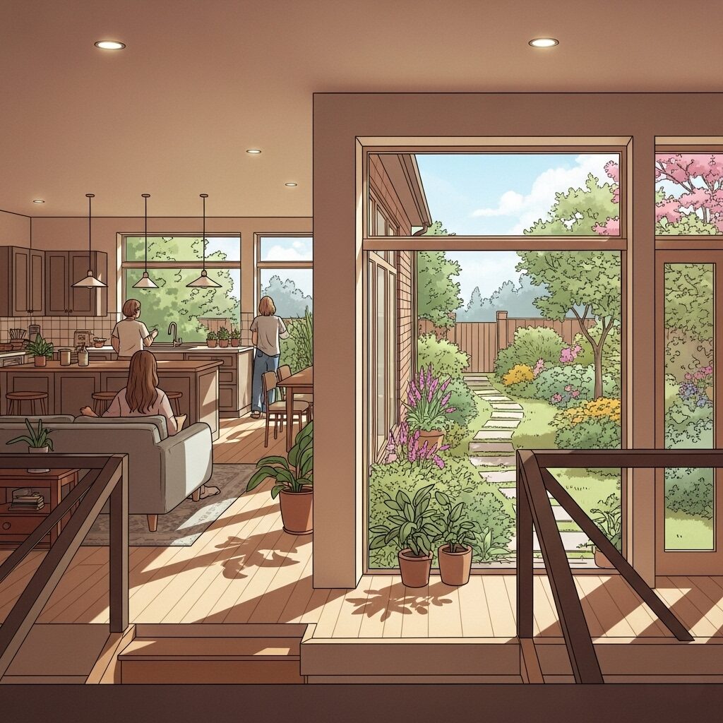 庭は屋外にあるだけの独立した空間ではありません。それは、室内から眺める「風景」でもあります。リビングのソファに座った時、キッチンの窓から外を見た時、そこにどのような景色が広がるかを意識することが極めて重要です 。