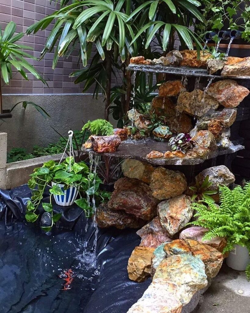 #岐阜石割栗石 と#鉄平石 を使った#滝石組