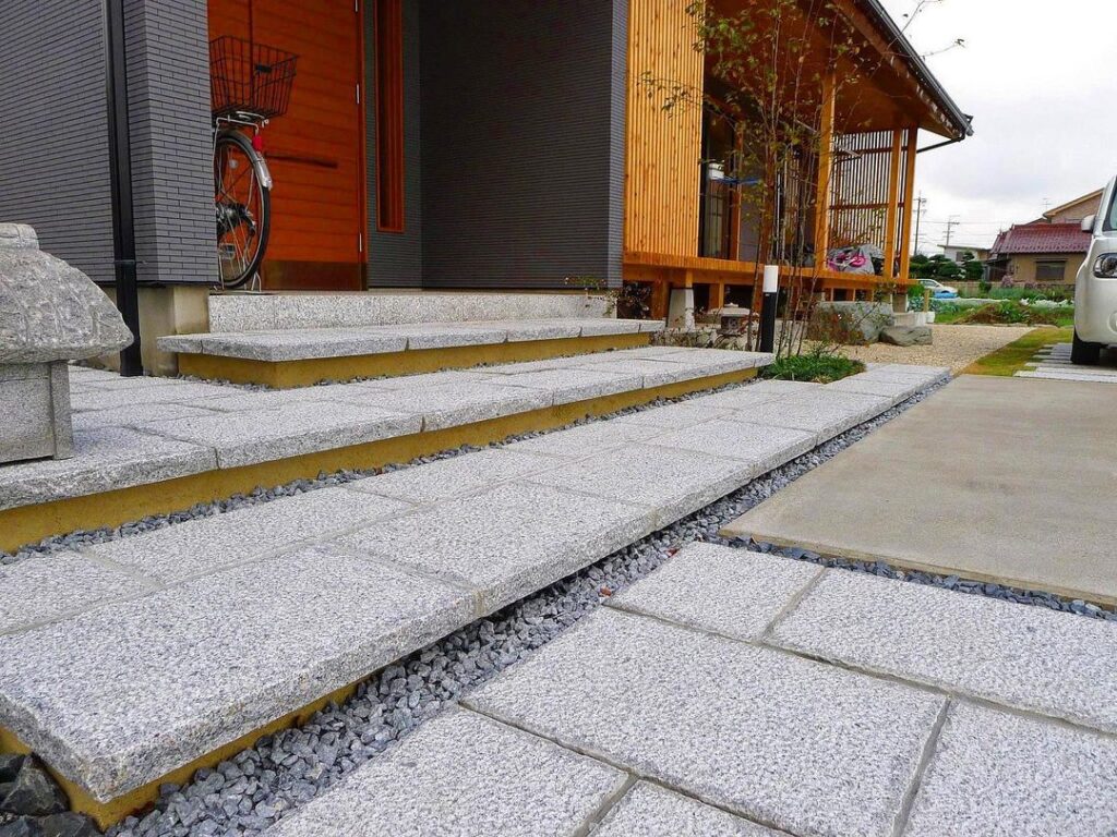 御影石板石の階段アプローチ