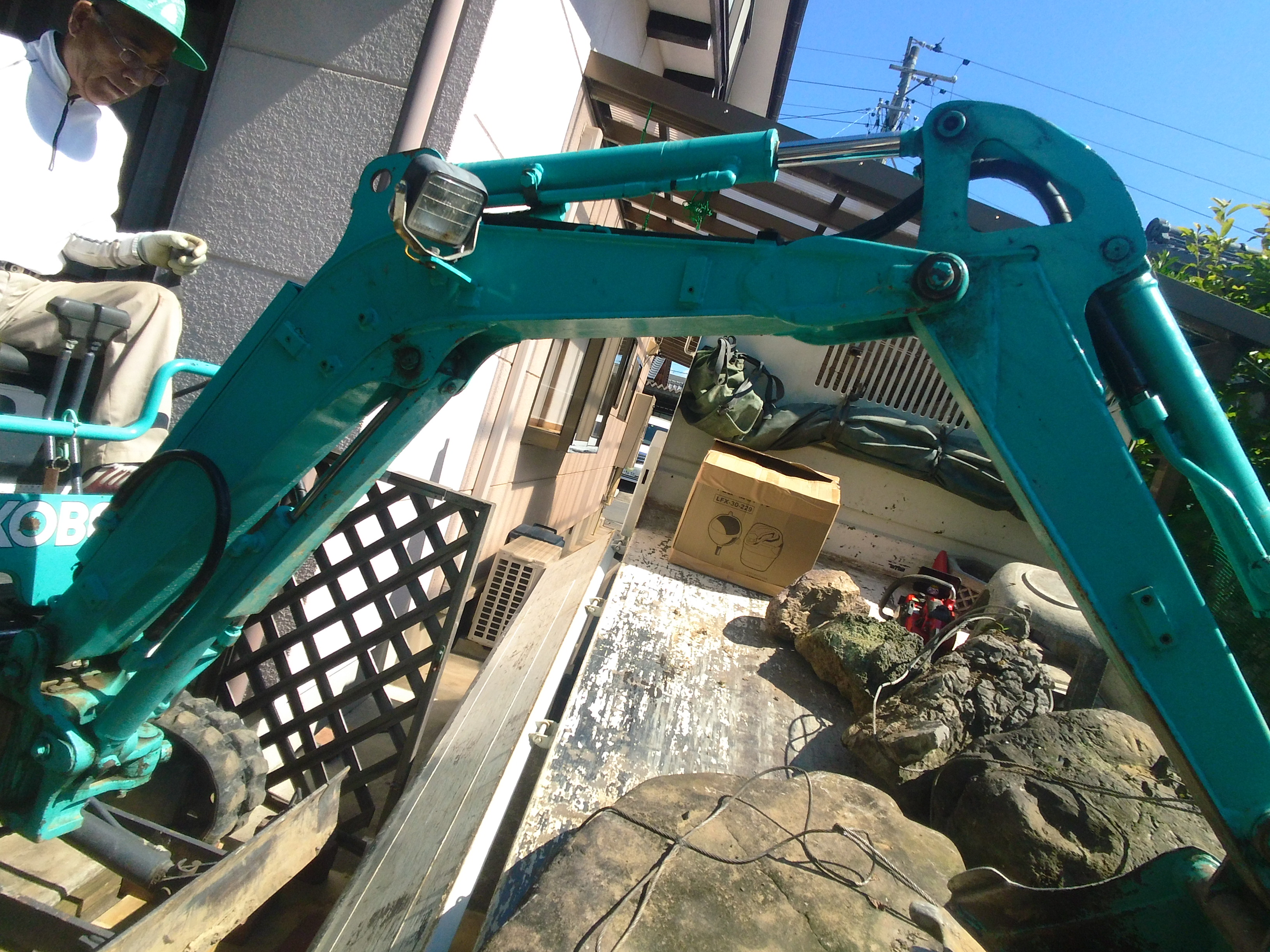 引っ越しするため、借りていた一軒家を返すことになり、原状回復するために持ち込んだ庭石やら庭木を撤去。