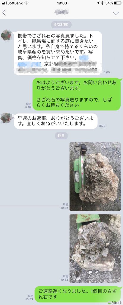 京都のお客様から、LINE@でさざれ石のお問い合わせいただきました。